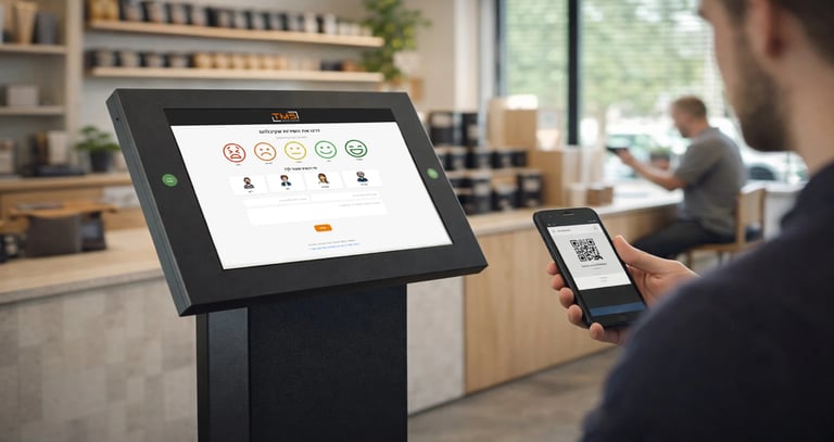 A live customer satisfaction system actively used in TMS retail branches. Customers scan QR/NFC to provide feedback, which is analyzed in real-time.